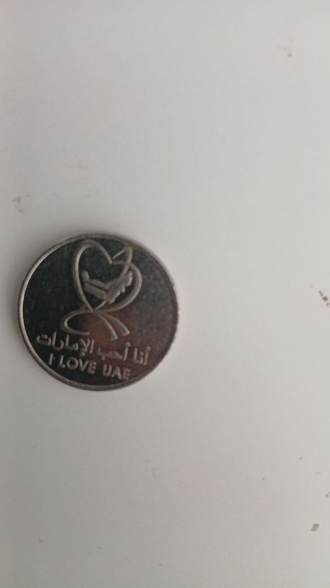عملة نادرة درهم اماراتي يحمل أنا أحب الامارات، I Love UAE, وعلية خريطة الامارات بقلب، يرجع لتاريخ 2010
