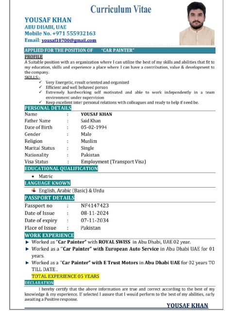 My name is Mohammed, I am 26 years old and originally from Syria. I currently reside in the UAE and hold a valid residence permit and a valid driving license. I also own a car. I am actively seeking employment and am available to join immediately. For contact