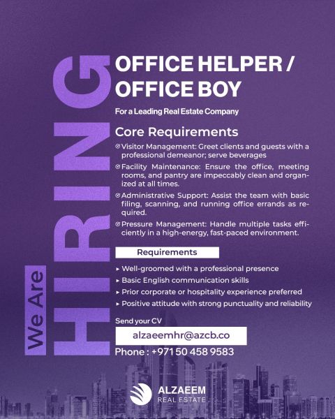 We are hiring office boy/ office girl - Abu Dhabi Al Nahyan