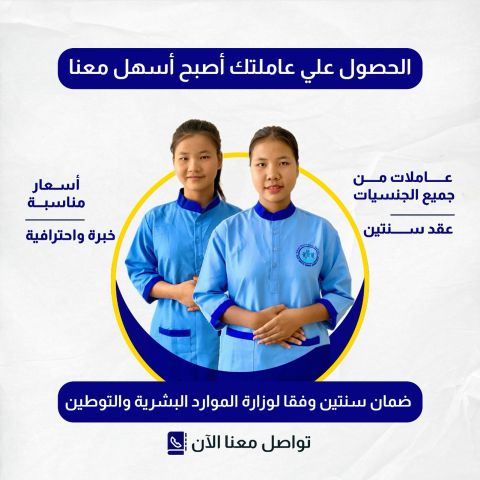 متوفر لدينا عمالة منزلية مدربه من جميع الجنسيات طباخات مربيات رعاية الاطفال وسائقات ورعاية كبار السن بأقل الأسعار مع ضمان سنتين وفقا لوزارة الموارد البشرية والتوطين