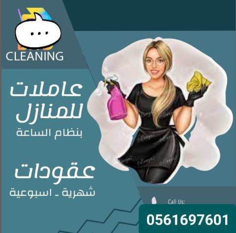 يوجد لدينا عاملات منزلية خبرة طبخ وتنظيف ورعاية اطفال وكبار السن يوجد ضمان علي العاملة وتبديلها وتوصيل لباب البيت يوجد عقود شهرية وبنظام الساعة لمزيد من المعلومات الرجاء الاتصال