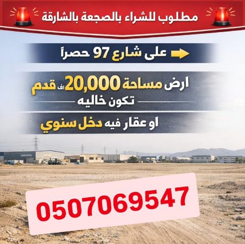 مطلوب للشراء في الصجعة الصناعية في الشارقة على شارع 97 حصرا أرض مساحة 20000 ألف قدم تكون خاليه