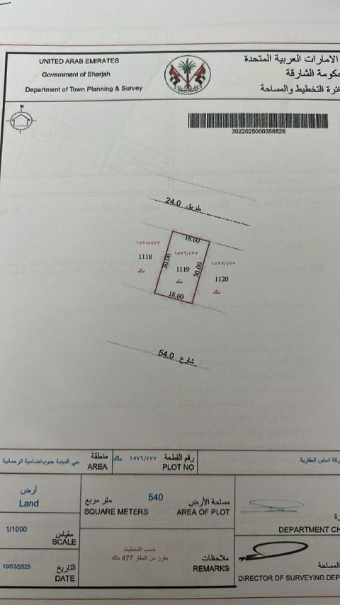 أرض زاوية للبيع في المطرق - ضاحية الرويضات، الشارقة، 2558 قدم، ملكية حرة، تصريح بناء أرضي + طابقين، موقع استراتيجي على شارعين، قريب من الخدمات، السعر 511600 درهم