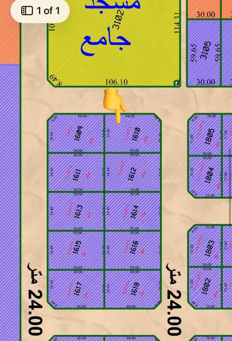 For sale two contiguous residential lands in Blida 1, two building permits, with remaining installments for one year. Area 6117 square feet per land - Foot price 147 dirhams - Total price AED899199 per land - Remaining installments one year - Next installment July 10, 2026 - Ownership free for all Arab nationalities