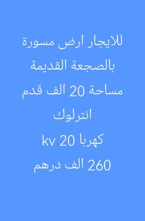 للإيجار أرض صناعية في منطقة الصجعة الصناعية موقع مميز مساحة 20000 قدم مربع بها كهرباء قوية 100 kv أرضية انترلوك بها مظلة كبيرة