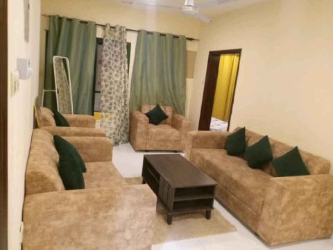 Furnished two - bedroom apartment with a living room for monthly rent Ajman Liwara area Spacious space All bills included electricity, water, sewage, and internet AED4000 instead of AED4500 per month. only AED500 security deposit, refundable upon checkout