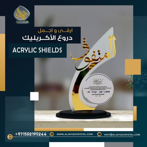 دروع الكريستال، دروع تكريم، دروع تذكارية، دروع اكريليك، دروع تخريج، دروع زجاج نقوم في الجائزة لتجهيز الهدايا الاعلانية بتصميم وطباعة دروع الكريستال والاكريليك ودروع المعدن والخشب ودروع الزجاج، لدينا خبرة طويلة في دروع الكريستال والاكريليك ولدينا مجموعة كبيرة من الاشكال والتصاميم، لدينا خدمات الحفر بالليزر وصناعة الصناديق المخمل والجلد والكرتون، ولدينا خدمة التوصيل لكل مدن الدولة