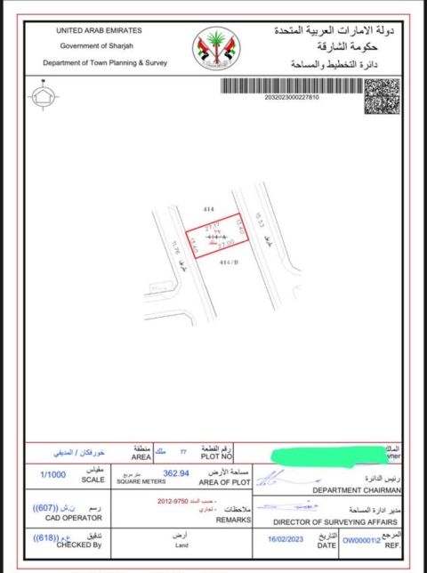 للبيع أرض تجاريه في خور فكان منطقة المديفي ثالث قطعة من البحر تصريح أرضي + 3 أدوار مساحتها 363 متر مربع مطلوب مليون و400 ألف درهم قابل للتفاوض الجاد