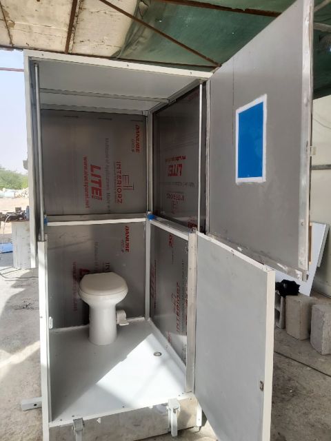 حمام محمول علي سيارات التخيم وفي البر يفتح وينغلق وزنه 55 ك ورتفاع 215 سم، وعرضه 92 سم وعمق 115 سم