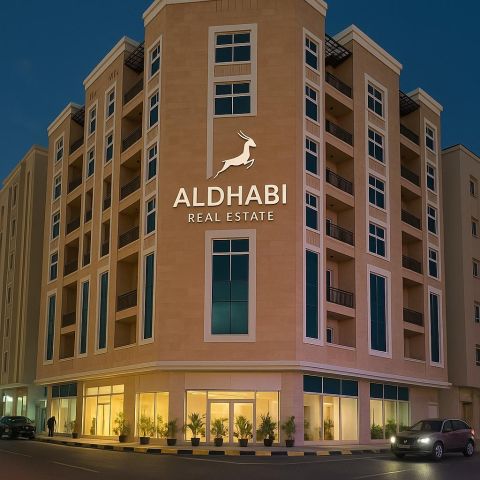 For sale, a new residential/ commercial building, the first resident in Sharjah, Muwailih area, formerly Falah Camp, a distinguished location, corner of two streets, ground floor + 4 repeated floors + 9 shops, number of apartments 28 apartments consisting of 20 apartments, one bedroom and a hall + 8 apartments, two bedrooms and a hall, current income one million dirhams, land area 8100 square feet