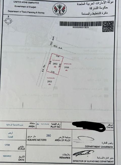 أرض في مزيرعة A مساحة 2800 قدم مربع. الأرض على شارع وسكة. مطلوب 510 ألف درهم نهائي غير قابل للتفاوض