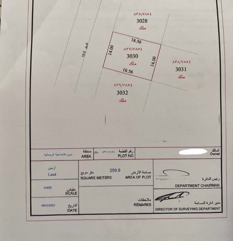 Residential Land in Mazirea - Sharjah Area 3444 feet Total price 700000 dirhams A privileged location within the Muzira area, suitable for building a private residential villa, characterised by easy access and proximity to vital services and facilities