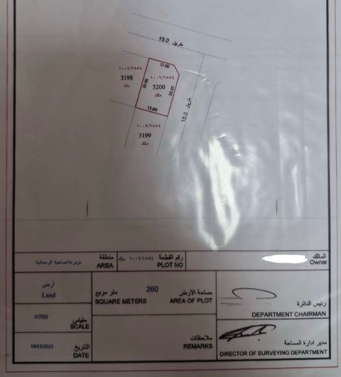 A Unique Investment Opportunity in Sharjah - Mazaira A Residential Land Area 3444 SqFt. Building Permit Ground + Two Floors Ownership Freehold for all Arab nationalities Land Features Prime location on a main street, 36 meters wide asking price An unbeatable deal of AED620000 Company Dar Al - Mustaqbal real estate