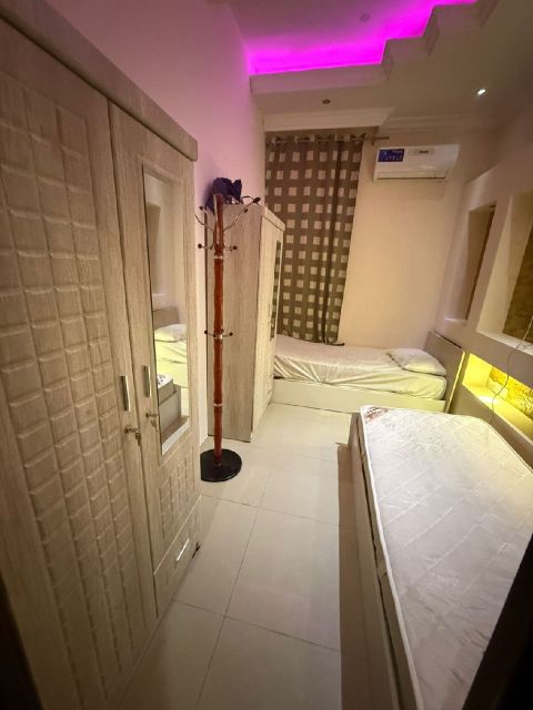 Beds are available in a quadruple room in Al Al Mwaihat, one behind Shurooq Mall. Upscale residence all residents are doctors, engineers, employees, and teachers. 24 - hour cleaning service and regular maintenance are provided. All services are included. Near Al Hoot Supermarket. High - end, top - class residence