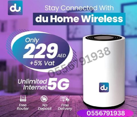 DU Home Internet WiFi monthly Rental AED229 Only 100 Mbps speed Promotion First 3 months 159 Free Unlimited data Free 5G WiFi Router Free Delivery No advance No deposit FREE installation 1 years contract. Contact