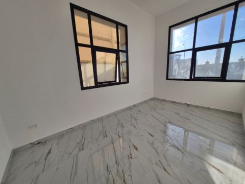2 Bedroom Hall New Villa with Balcony 1st floor family with registration free water and electric close to Market close to bus stop Al Murror area villa in compound near Bateen Airport 31st street Al Murror Abu Dhabi with 2 bathroom nice kitchen no monthly only yearly rent 85000/ up to 4 payment deposit 1 cheque office fees 500/ commission 5% for more information call me day time