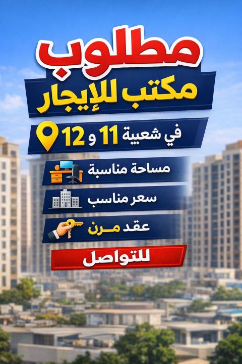 مطلوب مكتب للإيجار في بني ياس أو مدينة محمد بن زايد
