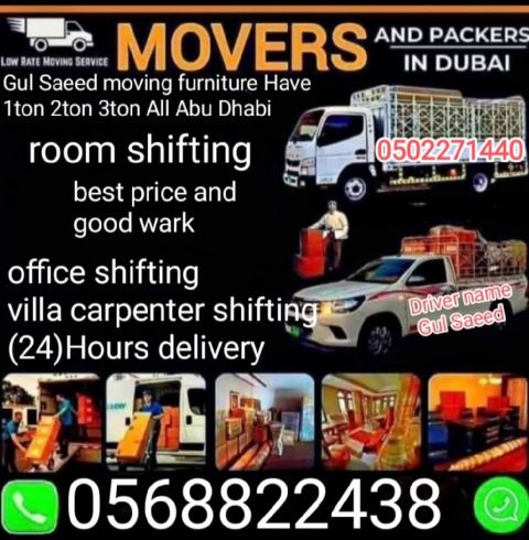 سيارة بيك اب للإيجار ثلاثة طن واحد طن هايلوكس لنقل أثاث فك وتركيب تغليف أثاث منزلي أبوظبي وكل امارات 24 / 7 نجار عامل موجود