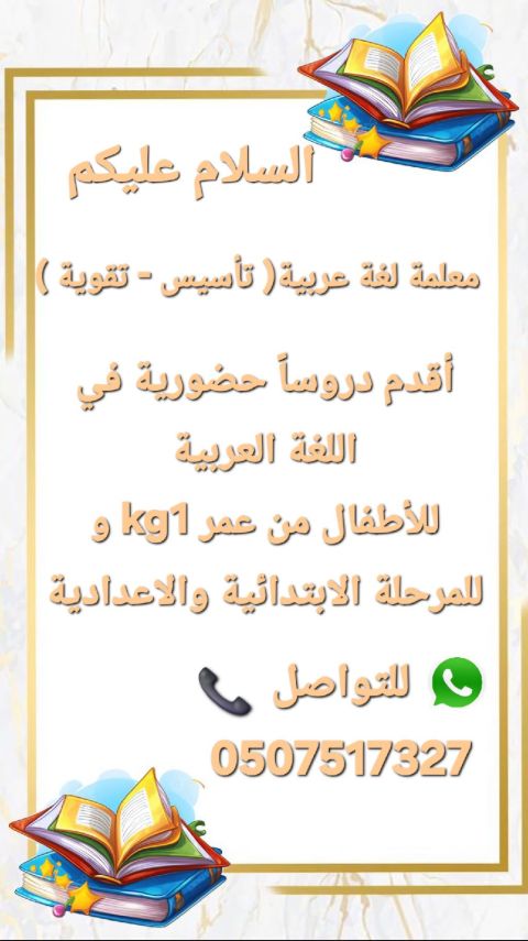 معلم لغة عربية وتربية اسلامية يدرس لجميع المناهج الحكومي والأجنبي وللمرحلتين الأولى والمتوسطة وتعليم الصغار القراءة والكتابة والإملاء