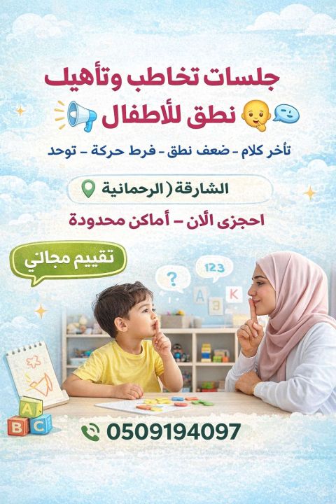 هل تبحثين عن جلسات نطق، تعديل سلوك، أو دعم تعلم لطفلك في المنزل في أنا ومعلم تي نوفر جلسات منزلية مريحة وآمنة مع متخصصه ذو خبرة، تشمل علاج النطق والتخاطب - تعديل السلوك - صعوبات التعلم برامج فردية تناسب احتياجات طفلك جلسات منزلية في الرحمانية - السيوح - الجادة - الزاهية - القرائن خصوصية كاملة وراحة لطفلك داخل بيئته الطبيعية. للحجز والاستفسار تواصلي معنا الآن