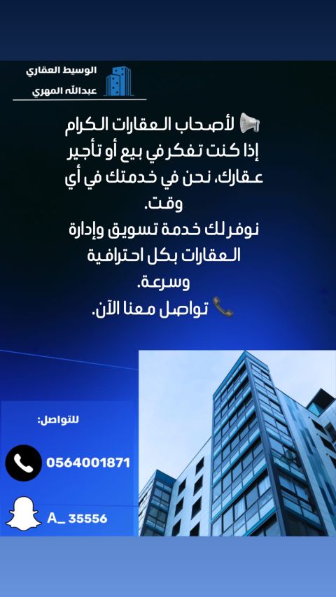 لأصحاب العقارات الكرام اذا كنت تفكر في بيع أو تأجير عقارك، نحن في خدمتك في أي وقت. نوفر لك خدمة تسويق وإدارة العقارات بكل احترافية وسرعة. تواصل معنا الآن