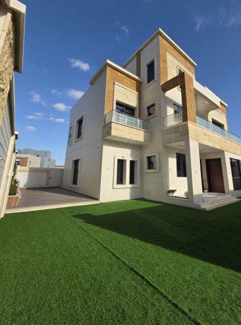 فيلا للبيع في عجمان منطقة الباهية تشطيب سوبر ديلوكس - قريبة من جميع الخدمات تفاصيل الفيلا 5 غرف نوم ماستر كبيرة جدا ومجهزة بخزائن الملابس صالة واسعة باضاءة سقف طبيعية مجلس فخم مع مغاسل وحمام خاص للضيوف مطبخ مجهز بالكامل مع فرن وميكروويف غرفة خادمة مستقلة حوش مع موقف مسقوف الفيلا تكييف مركزي بالكامل الفيلا تملك حر جميع الجنسيات بدون رسوم سنوية للتواصل