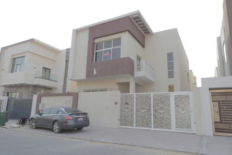 فيلا للإيجار في عجمان منطقة الروضة 2 بجوار مسجد 5000 قدم 5 غرف ماستر و2 صالة ومجلس ومطبخ وغرفة خادمة وحوش السعر & 135 ألف للتواصل