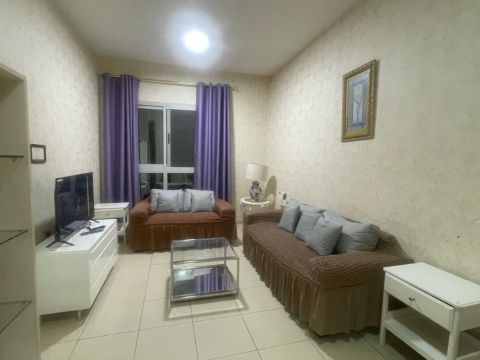 Two rooms and a furnished hall for monthly rent in Ajman, Al - Waha Towers, Al Mina Street, close to the fish market, very clean modern furniture, wonderful sea view, it has a kitchen equipped with all electrical appliances and necessary tools, central air conditioning, parking, security, surveillance cameras, a large area and a very distinguished location, close to all services, restaurants, cafes