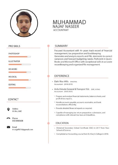 I am Mohamed Masri, 25 years old, residing in Sharjah, UAE. I am looking for a job in accounting. I have 3 years of experience in financial accounting