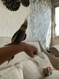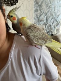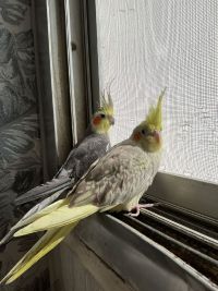 زوج طيور كوكتيل مدربه أليفه ذكر وأنثى بصحة ممتاز