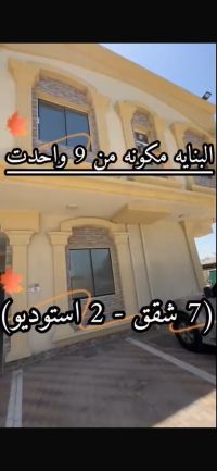 بناية سكني استثماري جديدة ب منطقة جلفار علي أرض زاوية في إمارة رأس الخيمة المساحة 000'7 قدم مربع (80*80) المشتملات 9 وحدات (7 شقق غرفتين وصالة ومطبخ وحمامين - 2 استوديو) عمر البناء 4 سنوات الدخل 000'178 تم تنزيل السعر الى 000'900'1