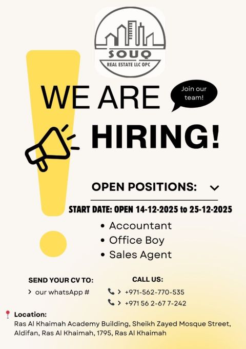 Need a good Background and a hardworking person to maintain the cleanliness of the office and willing to work outside service in Ras Al-Khaimah Mosque Street Aldifan. Office Boy is a must needed