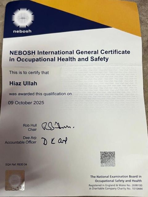 I am Hiaz ullah a verified safety officer. Located in UAE. Looking for the Job of Safety officer/ HSE and other related jobs in safety fields. I can speak English (fluently) Urdu and Arabic (Basic) I have NEBOSH (IGC) OSHA 48, Fire safety and First Aid. And Bachelors Degree. For more details contact