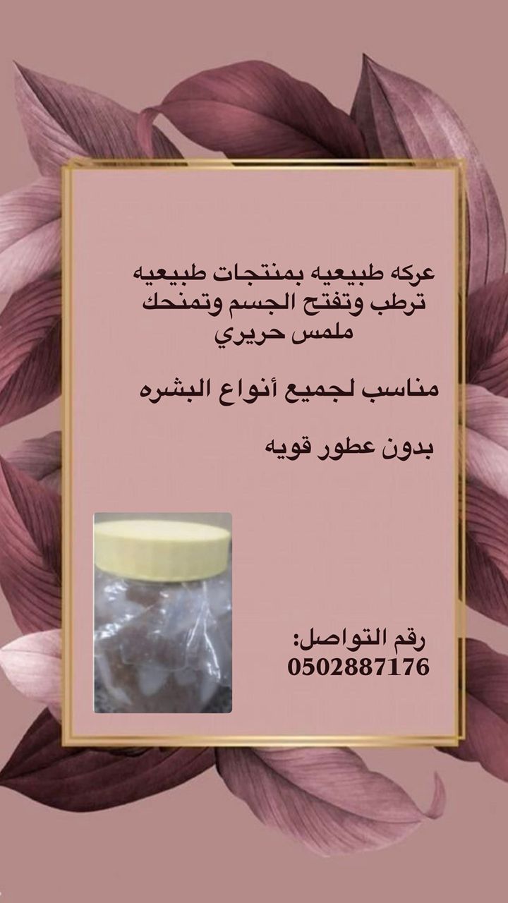لدي عركه طبيعية (دلكة سودانية) من المنتجات الطبيعية منعمة ومرطبة للجسم وتفتح البشرة ولها نضارة ونعومة فايقة طارده للقشور الشتوية مع خدماتنا للسيدات والعروسات في الدلك نصلك حتى منزلك