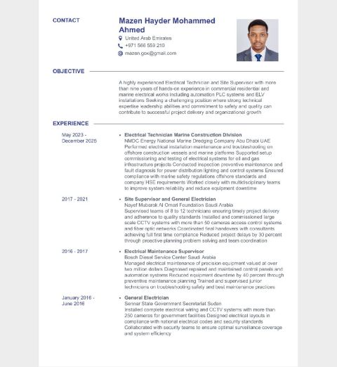 Dear Hiring Manager I am writing to express my interest in an Electrical Technician or Site Supervisor position With over nine years of experience across commercial residential and offshore marine projects I bring strong technical expertise in electrical installations automation PLC systems and ELV solutions Throughout my career I have successfully led teams delivered complex projects met str
