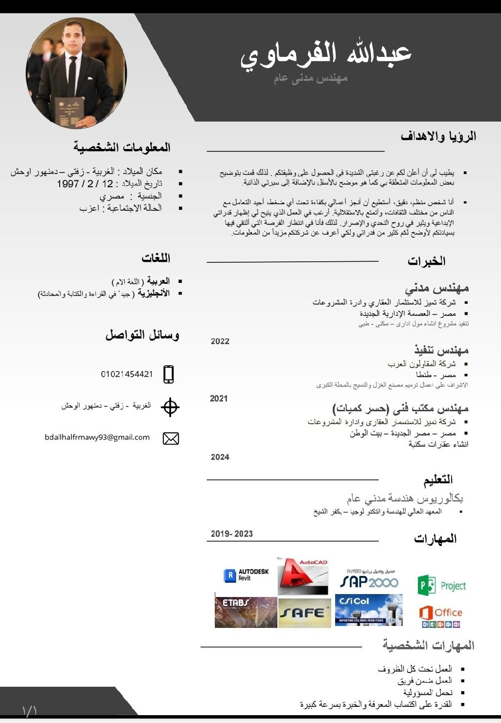 مهندس مدني موجود في مصر يبحث عن وظيفة في الامارات العربية