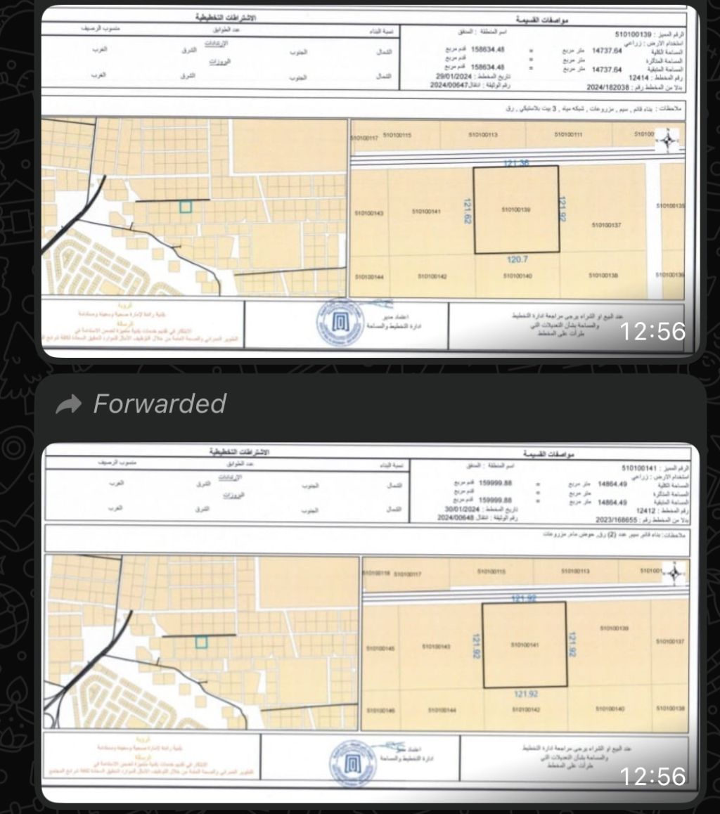 مزرعتين للبيع جنب بعض فيهم كهرباء وسكن عمال ورق مساحة الأرض مزرعة 159999 قدم مربع والثانية 158634 قدم مربع منطقة المدفق للتواصل