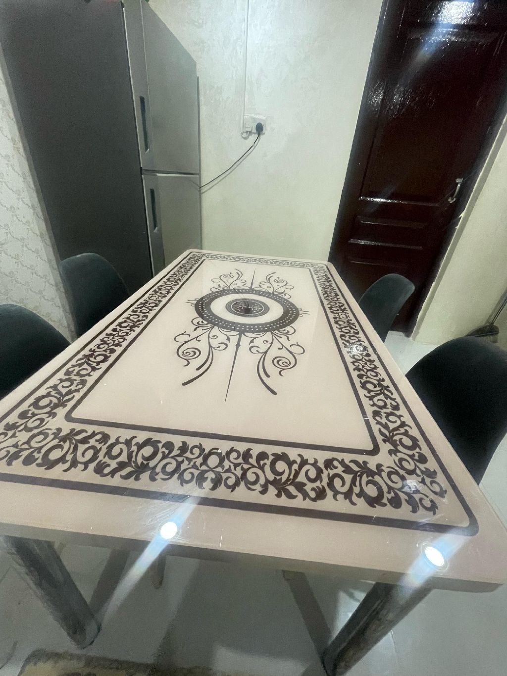 Dining table with 4 chairs in good condition in RAK cornish qawasim WhatsApp if serious buyer 250 dirhams only