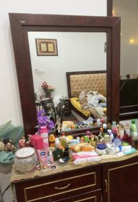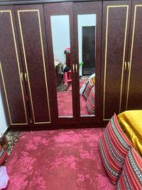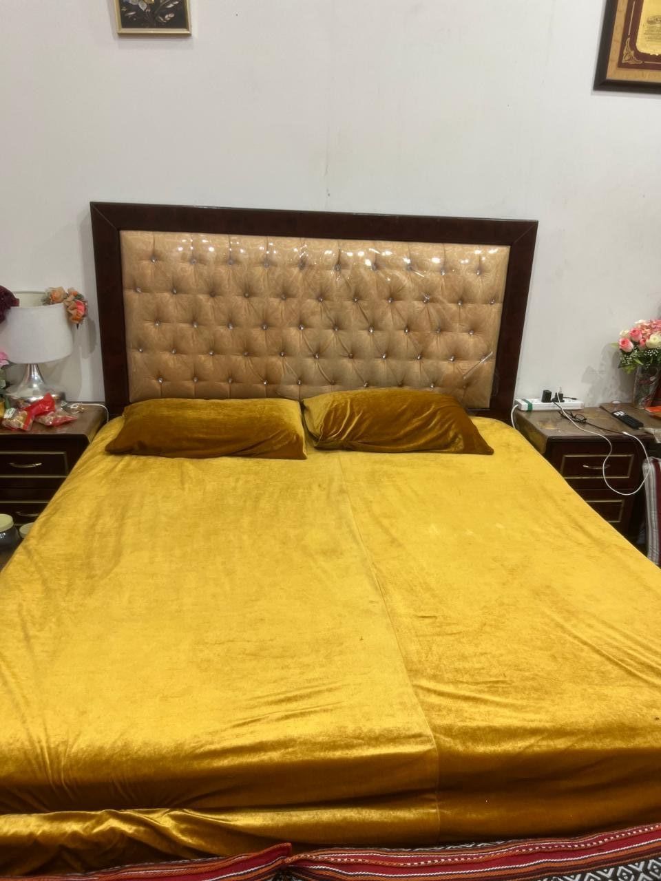 Used Stylish Bedroom Set for sale Complete set bed, side tables, wardrobe & dressing table. Strong wood, elegant design, well - maintained with minor signs of use. Ready to use
