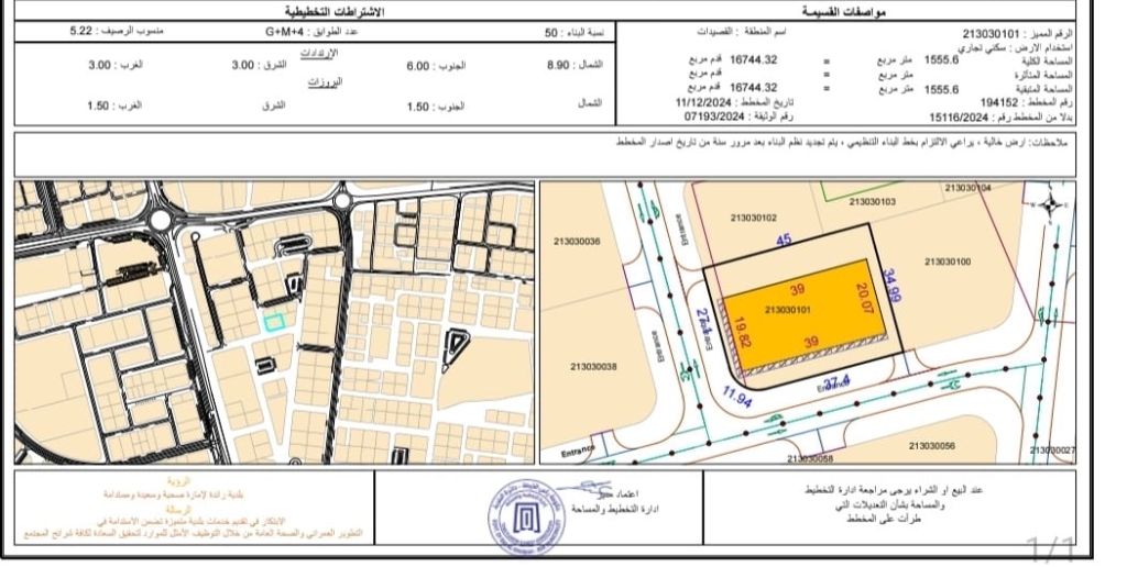 للبيع أرض سكني تجاري في منطقة القصيدات مساحة 17 ألف قدم على زاوية عليها نظم بناء G M 4 مطلوب مليون و500 ألف نهائي