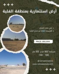 أرض بمنطقة الفلية سكني استثماري قرب ملعب الفلية للبراعم مساحة 9687 قدم (100*100) 900 متر على شارع الضمان القسيمة الثالثة من شارع الفلية مطلوب 350000 د إ