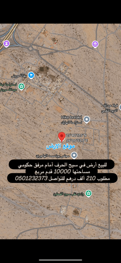 للبيع أرضين سكني في منطقة الظيت الجنوبي في إمارة رأس الخيمة مساحة الأرض الواحدة 100*100 مطلوب 730 ألف درهم