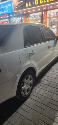 Nissan car, white, clean, fully serviced, lady-driven, in very good condition. For serious buyers only. Price: 14,000 dirhams, negotiable.