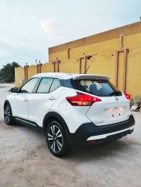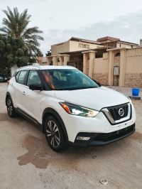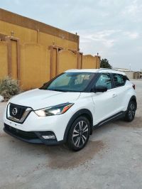 Nissan Kicks 2019 SR model, imported new, first owner in the UAE. Mileage: 100,000 miles, pearl white color, fully loaded options, 1.6L gasoline engine, 360-degree cameras, 8-inch screen supporting Apple CarPlay and Android Auto, 17-inch rims. The car features fingerprint start and entry, cruise control, blind spot warning system, emergency braking system. Price: 25,000 AED. Location: Ras Al Khaimah emirate.