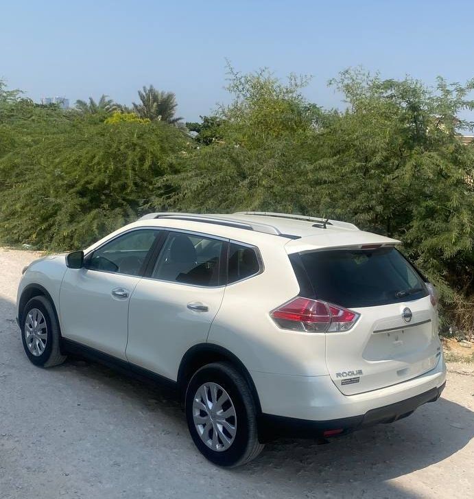 Nissan Rogue 2015, white color, successful inspection, odometer 132 miles, cruise control, signals on mirrors, steering control, air conditioning, refrigerator, customs papers available, Ras Al Khaimah, price 19,000 AED.