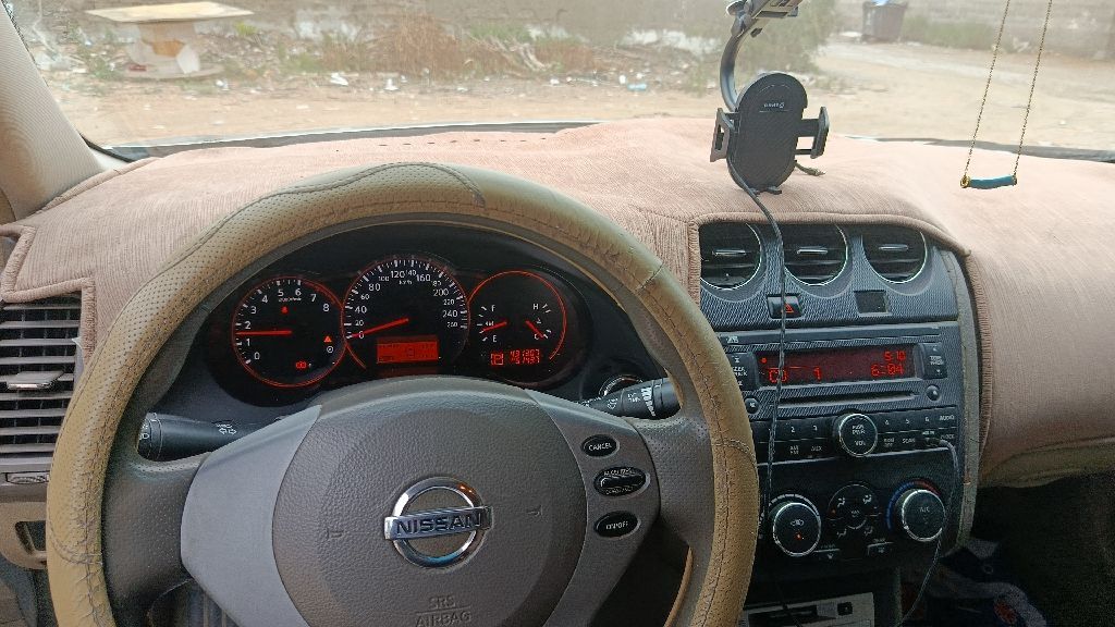 Nissan Altima with engine replaced two months ago, with new bearings and new upholstery. The air conditioning does not consume oil, and the registration has been renewed in Ramadan.
