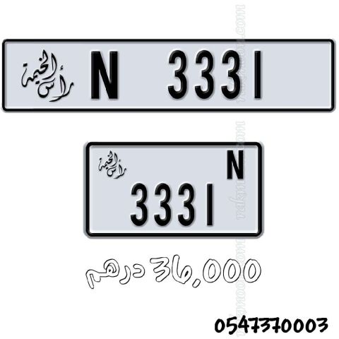 للبيع رقم سيارة 3331 كود n رأس الخيمة الامارات