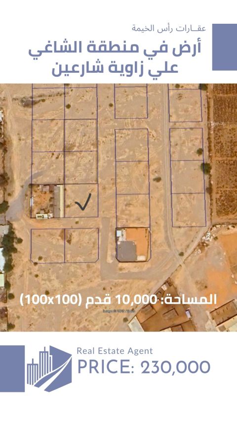 للبيع أرض في منطقج الفحلين في إمارة رأس الخيمة مساحة 100*100 على زاوية بسعر مناسب
