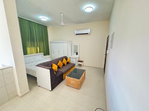متاح للإيجار من أول الشهر غرفة وصالة وحمام ومطبخ بمجمع في العريبي شامل الماء والكهرباء 2000 درهم
