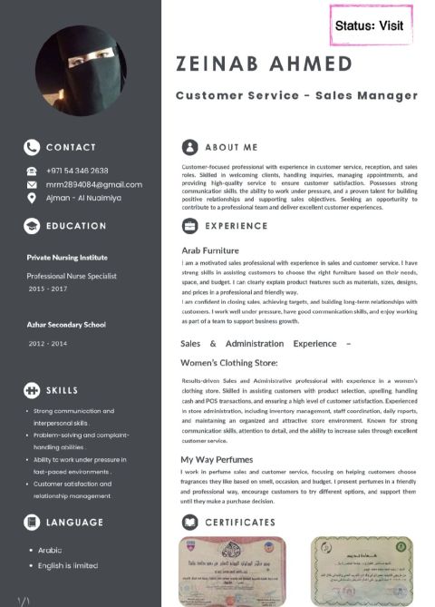 ابحث عن فرصة عمل في مجال بيع المصوغات والمجوهرات داخل دولة الامارات - امتلك خبرة عملية تمتد لأكثر من عشر سنوات في مجال السيلز والتعاون المباشر مع العملاء وتحقيق أهداف المبيعات - المؤهلات والخبرات خبرة قوية في بيع الذهب بجميع أنواعها - القدرة على بناء علاقات طويلة الأمد - الالتزام بالمصداقية والدقة في العمل - حاصل على شهادات خبرة موثقه في المجال